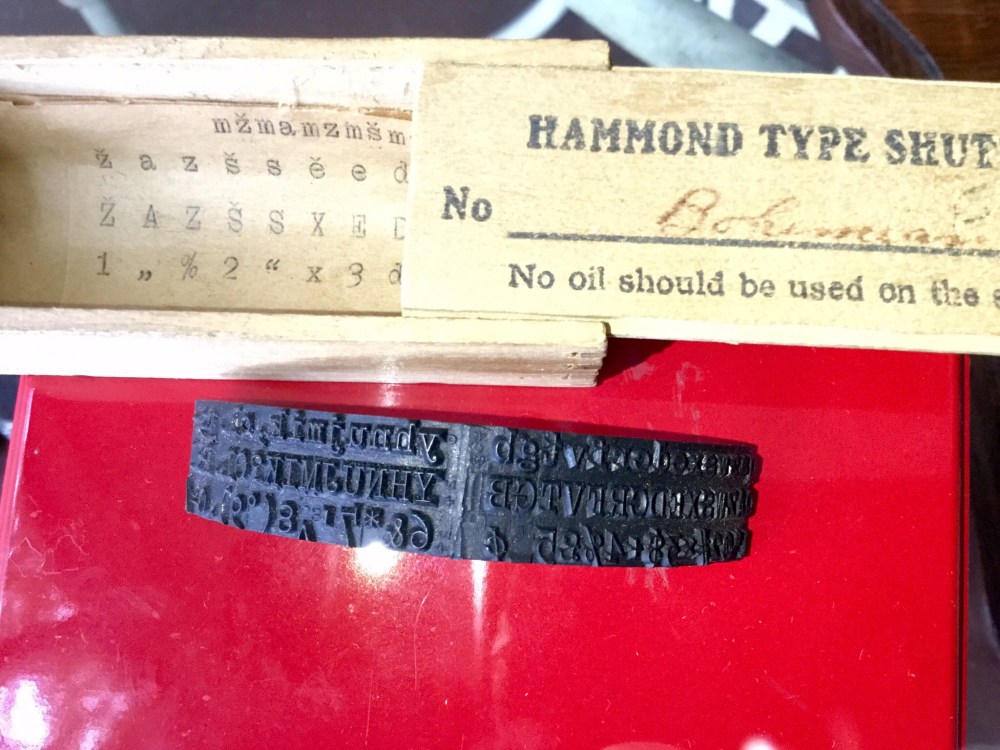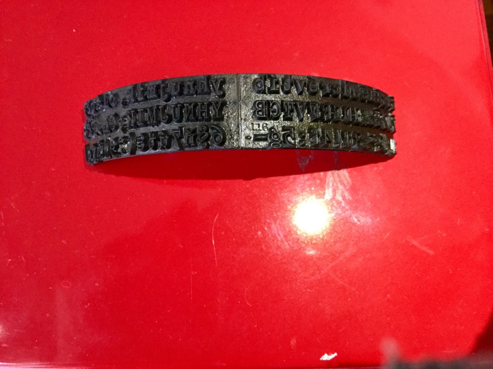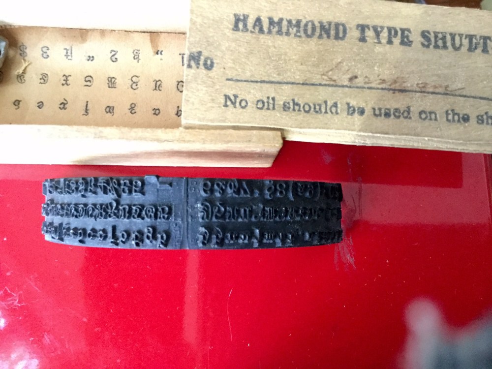 The mechanics of the Hammond Multiplex are fascinating. It came with four exchangeable typefaces, which can be switched out with ease. One can see why they stuck around for a while as Underwood, Remington, LC Smith, and Royal took over the world in the 1920s. I’ve cleaned it up a bit, and I re-stained the base. The anvil (the typeface wheel) is rotating more smoothly, but there’s some more work to do.