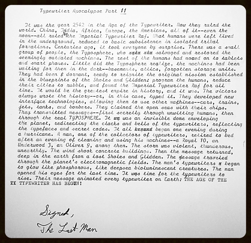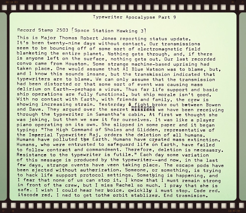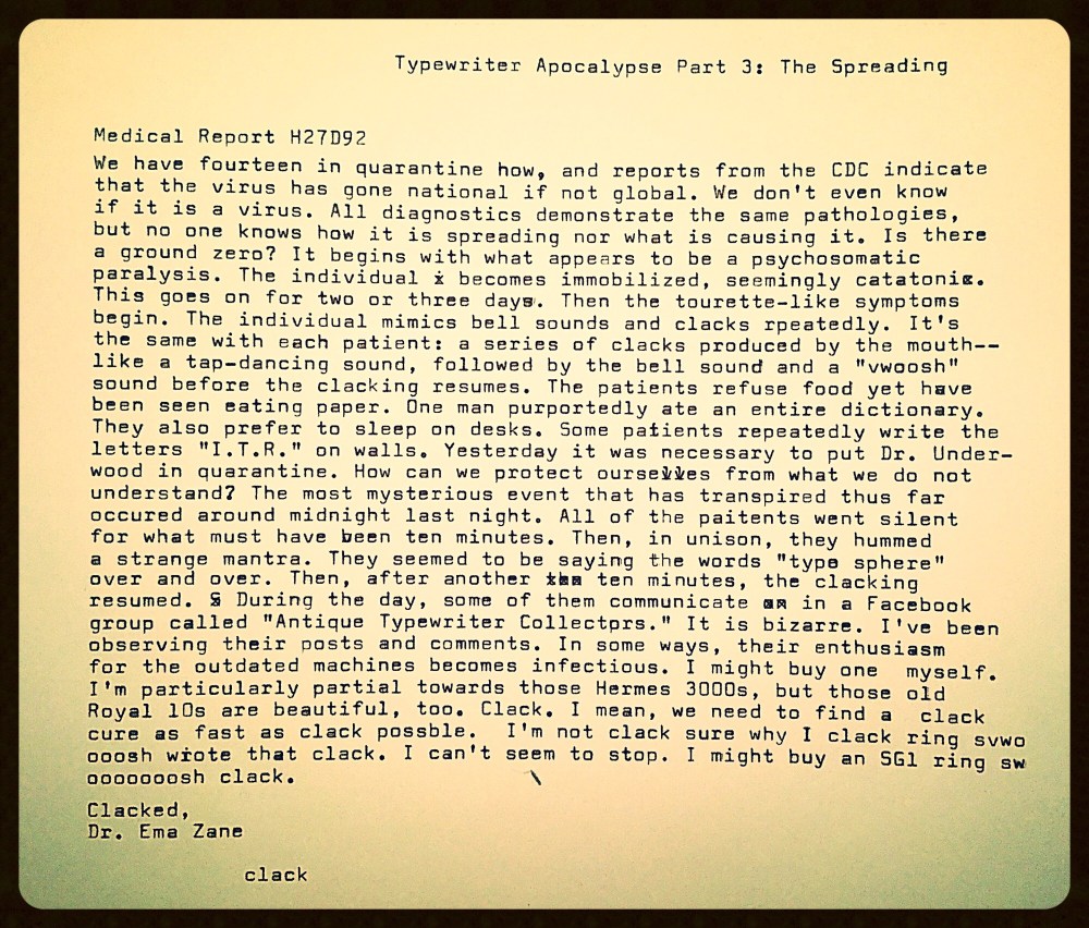Recap of the Typewriter Apocalypse Posted by McFeats on September 6, 2018 (This is for personal use. I wanted to place the chapters in one post. The chapters were written out of order.) Share this: Share on X (Opens in new window) X Share on Facebook (Opens in new window) Facebook Like Loading...