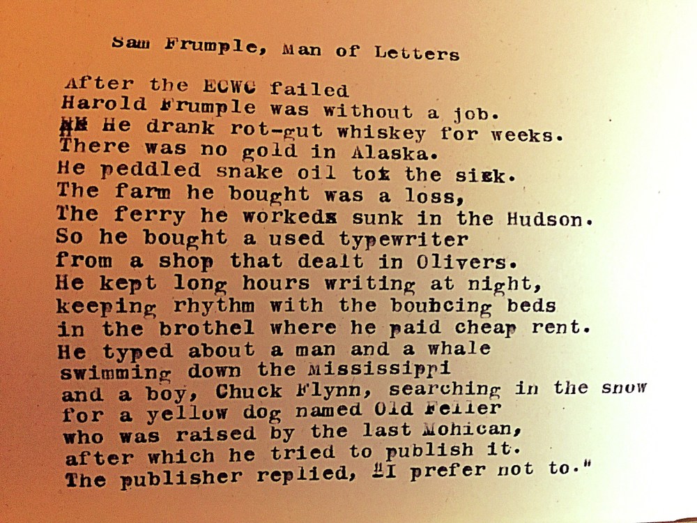 1. That made me smile. I’m getting a rounded picture of Mr Frumple…looking forward to him being played by Tom Hanks in the biopic.