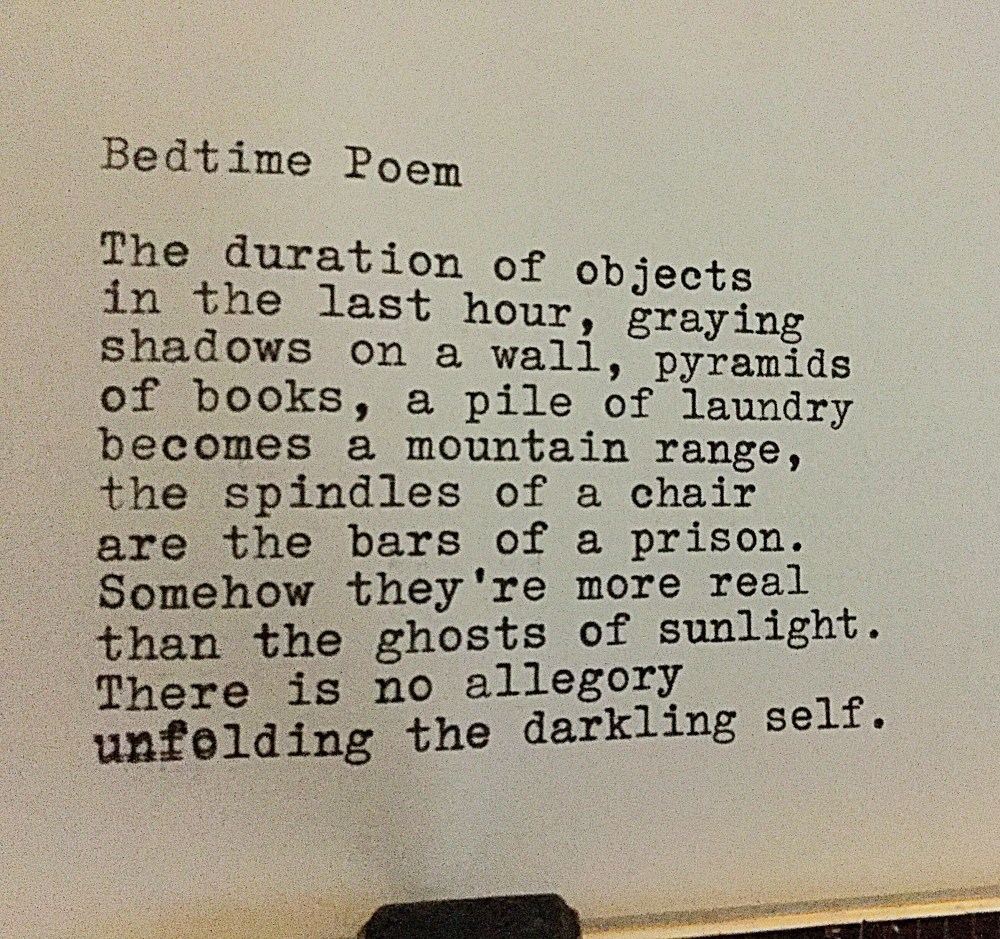 Also, we (wife and self) were discussing “darkly” yesterday, deciding it was invented by Thomas Hardy, The Darkling Thrush. I haven’t come across any precedents.