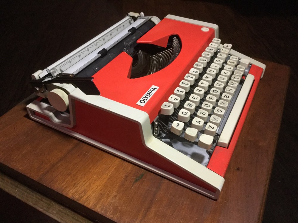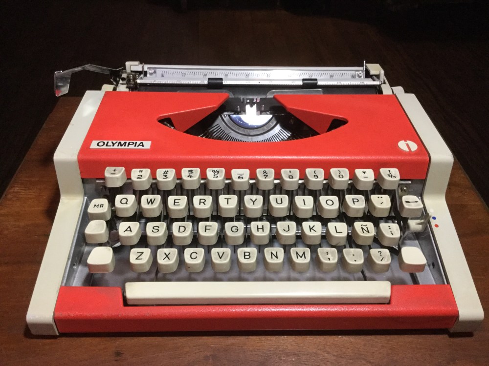 I saw this Olympia Traveler at an antique mall some months ago. It was selling for $130, if I can recall correctly. No thank you. It was filthy. The slugs were junked up. The carriage wheezed. I checked in on it during some other visits. Each time the price dropped a bit more. $80? No thank you. $60? Nope. Today it was on sale for $25. I’ll take it. I’ve been cleaning it up. It’s working much better. With a little more elbow grease, it will be in ship-shape. As much as I love Olympias, this is not my favorite model. However, it’s my first Spanish keyboard, which might be useful for a class project.