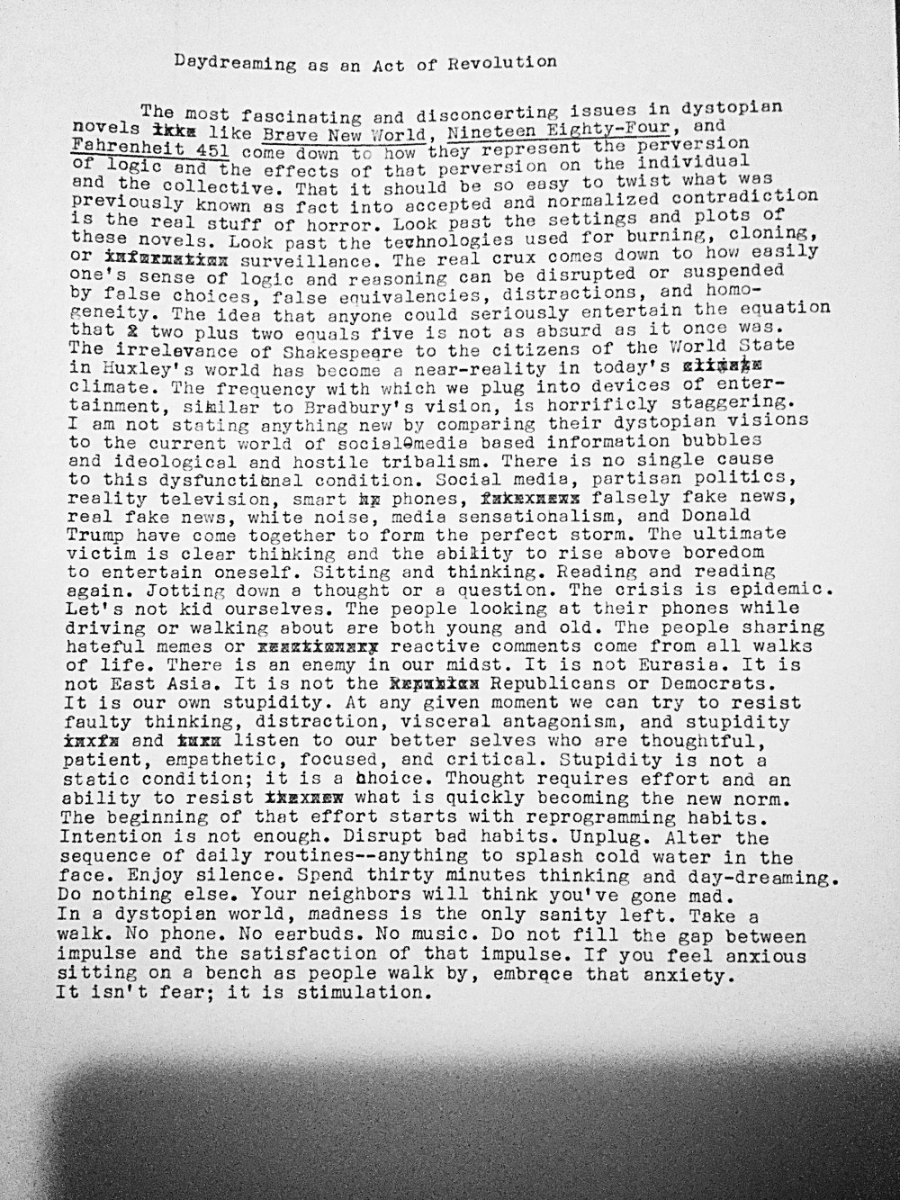 Daydreaming as an Act of Revolution Posted by McFeats on October 16, 2018October 16, 2018 Share this: Share on X (Opens in new window) X Share on Facebook (Opens in new window) Facebook Like Loading...