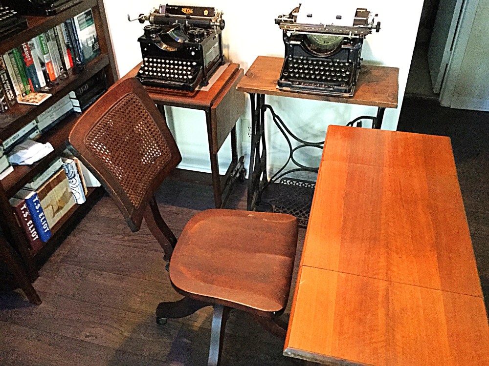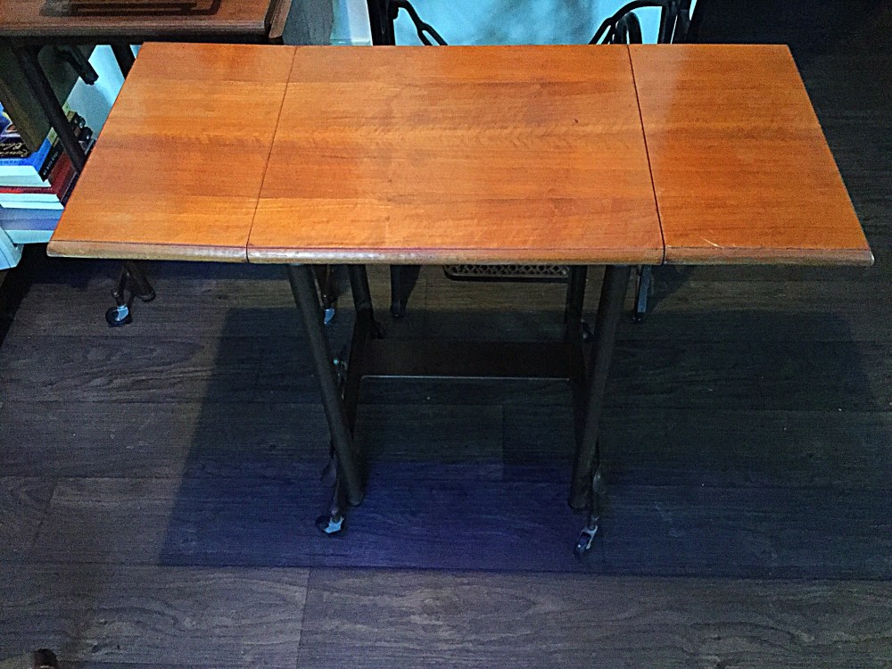 Beautiful typewriter table. Looks very much like the last one I bought. I presently have 2. I bought the second one for a movable work table, but then I got a Hermes Ambassador. Like the old saying…”They don’t make ’em like that any more.”