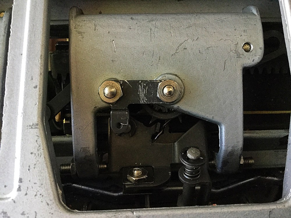 The backspace lever would not connect with the escapement. I took a look at the backspace mechanism. What was the problem? I opened up the machine.