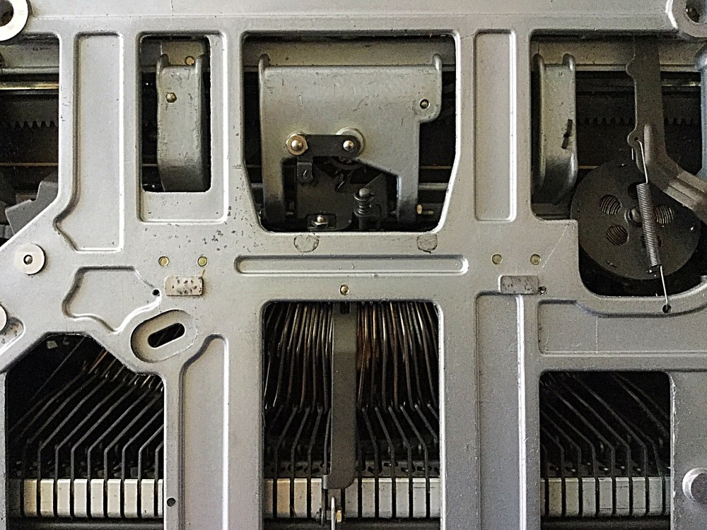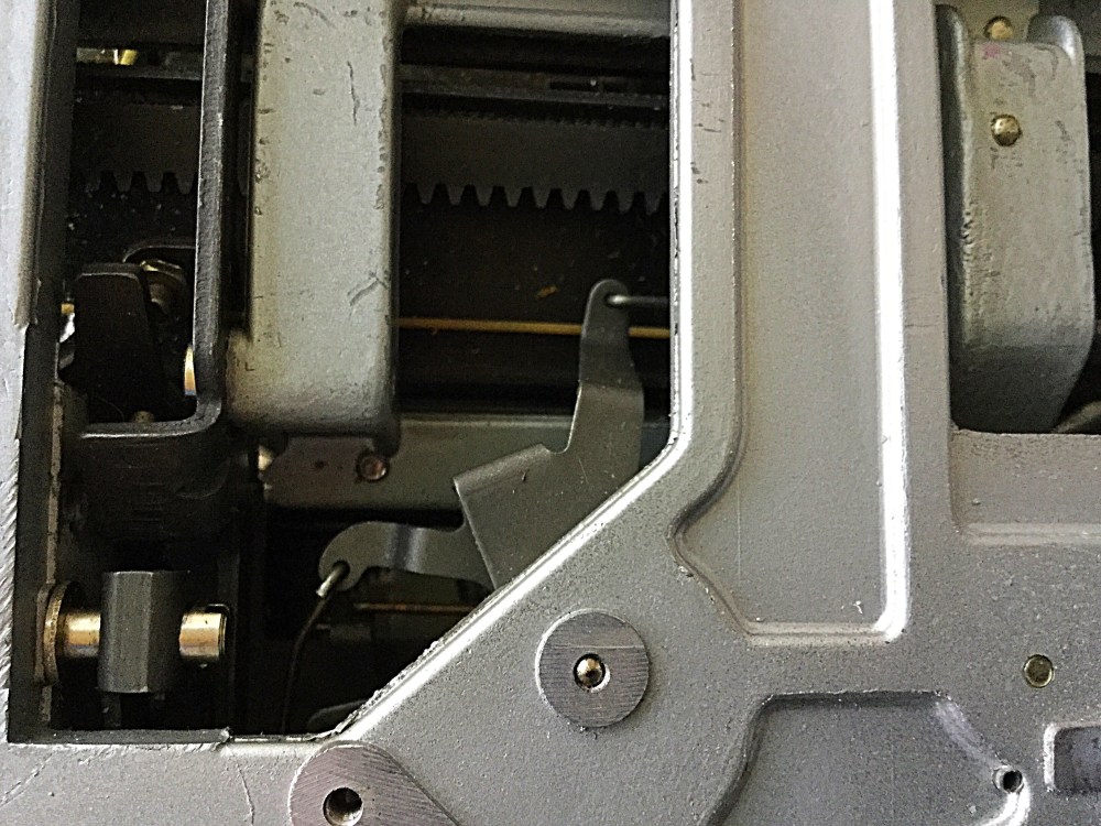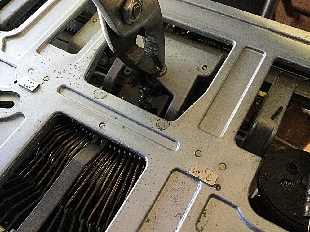 Ever since then I’ve enjoyed typing on the machine, albeit the typebars needed some loosening up. The other day, however, the escapement began to catch at random parts on the page. The carriage would not advance.