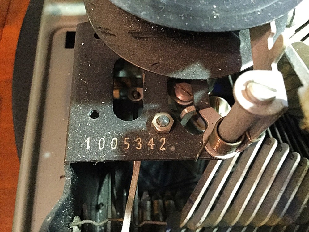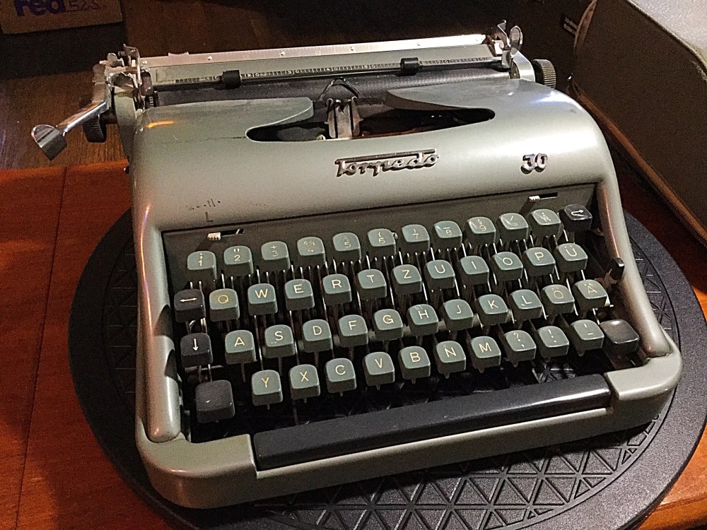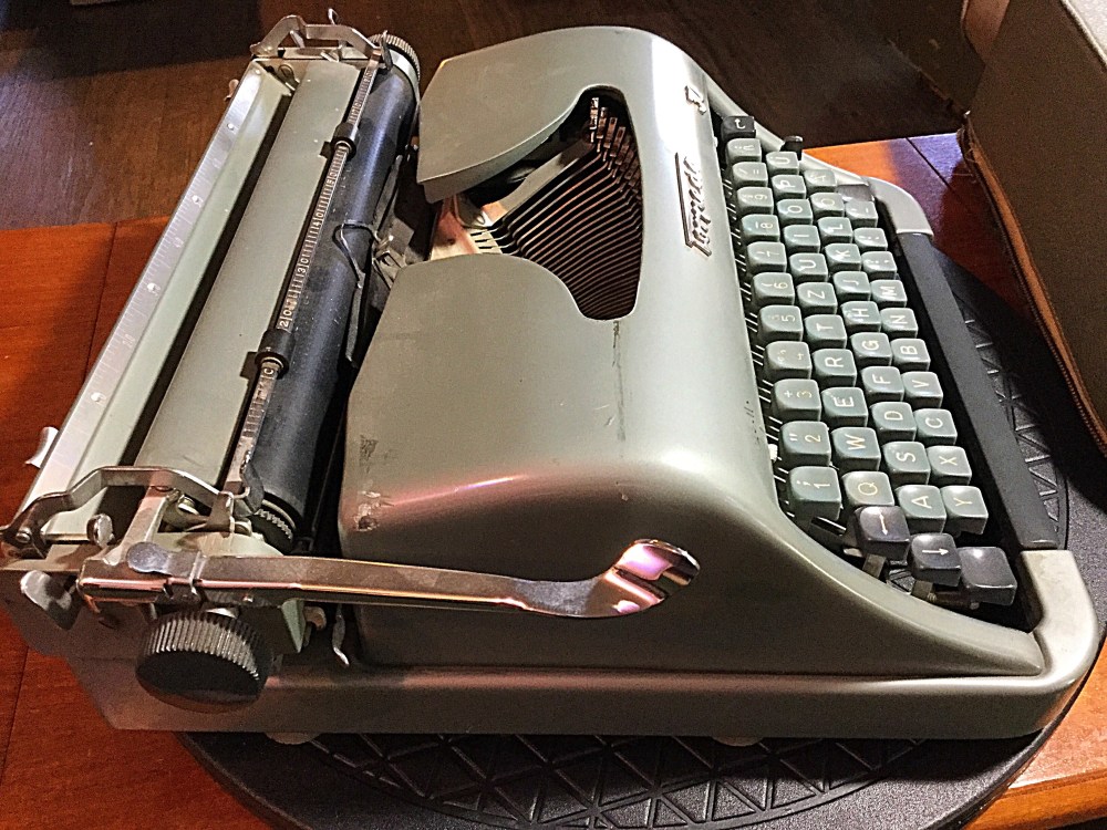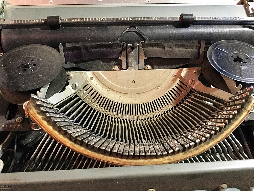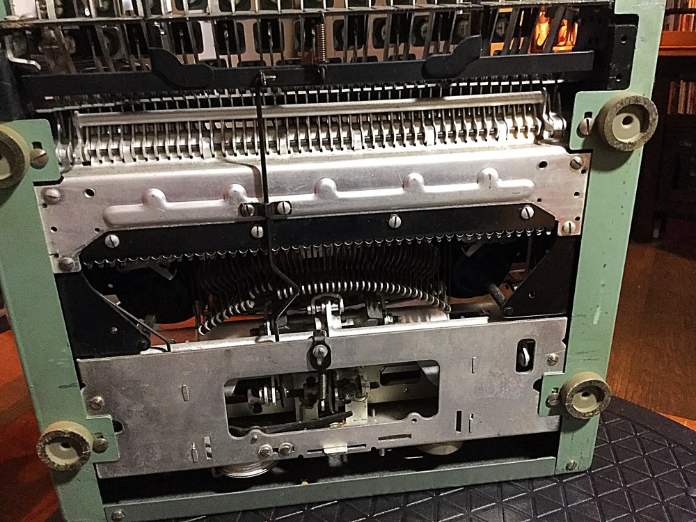The color of the body is interesting, appearing variously green, grey, or blue, depending on the lighting. Hopefully I’ll have this machine typing smoothly tonight.