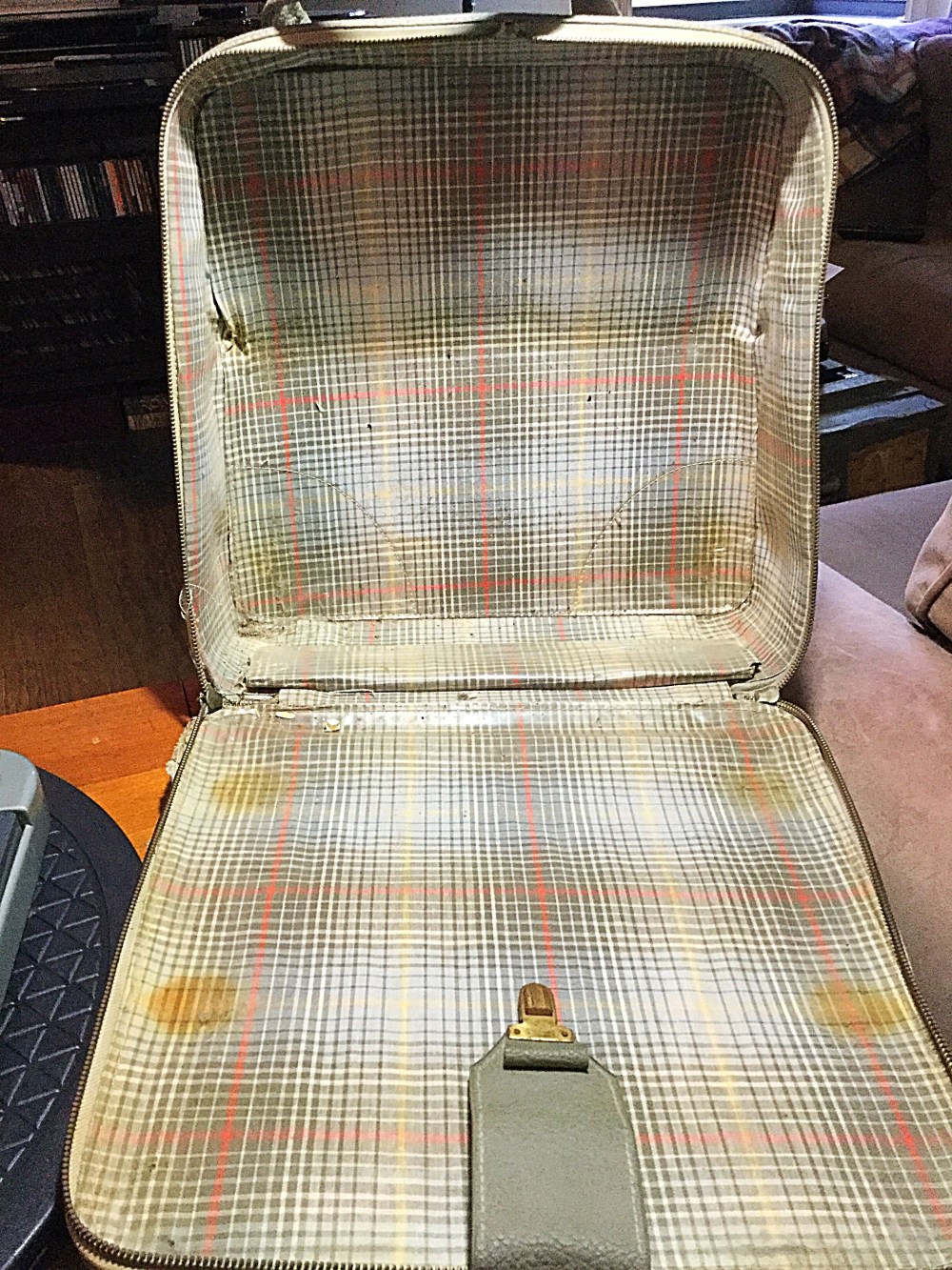 Overall, it seems to be in good condition. It needs some cleaning. The slugs are sluggish, but the carriage slides smoothly. The felt is in great shape. The case is very good, but needs some sewing in one part. My first mission is to massage the carriage-return lever upward. As you can see from the photos above, the lever is scraping against the lid. That undercarriage looks great.