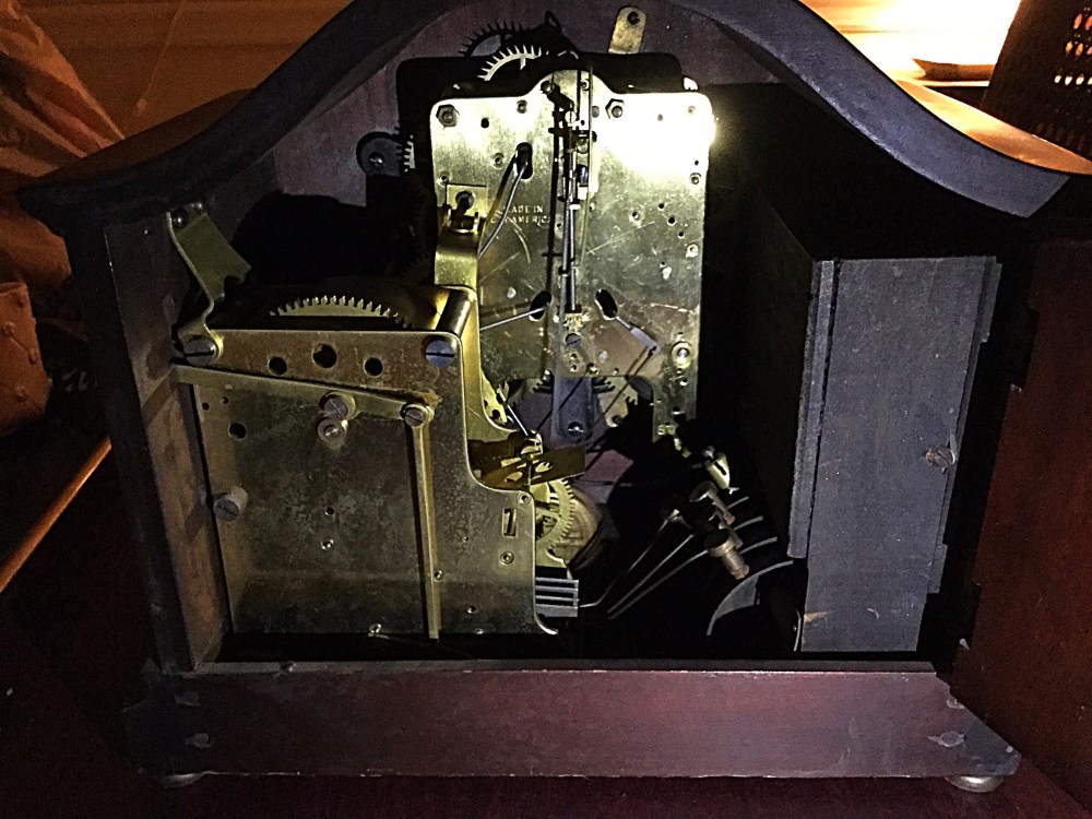The spring coils could use some oil, which I’ll attend to later. There are two main assemblages in the clock: the clock gears and the chime gears. The former obviously initiates the latter. I carefully wound the spring coils. All good. The clock began ticking, but it stopped after thirty or so seconds. I then noticed the clock gear that moves the pendulum seemed out of place. I pushed it back into place. I also think the gears needed some exercise. After a while, I got it working. It’s been ticking and chiming all night. It’s coming home with me. I’d like to think my mechanical intuitiveness comes from James Conlon.