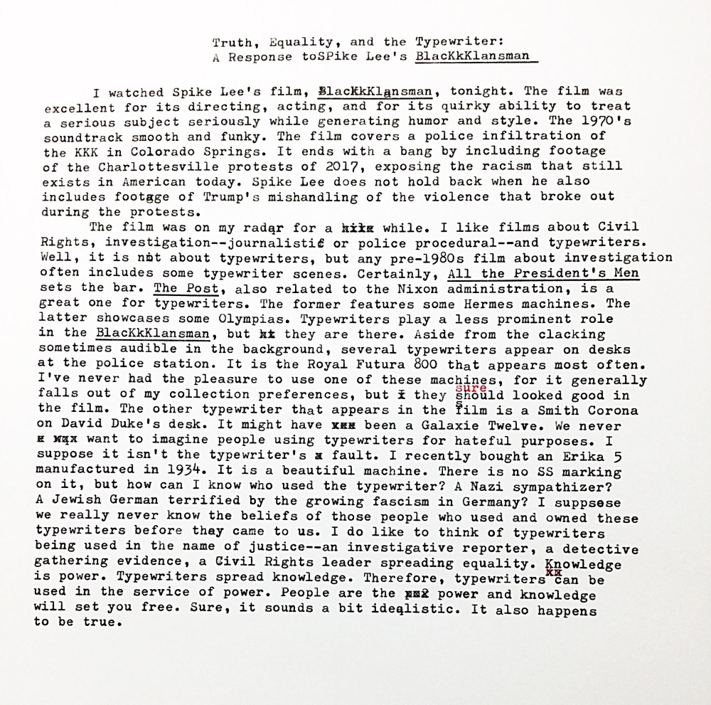 Truth, Equality, and the Typewriter: A Response to Spike Lee’s BlacKkKlansman Posted by McFeats on December 5, 2018 Share this: Share on X (Opens in new window) X Share on Facebook (Opens in new window) Facebook Like Loading...