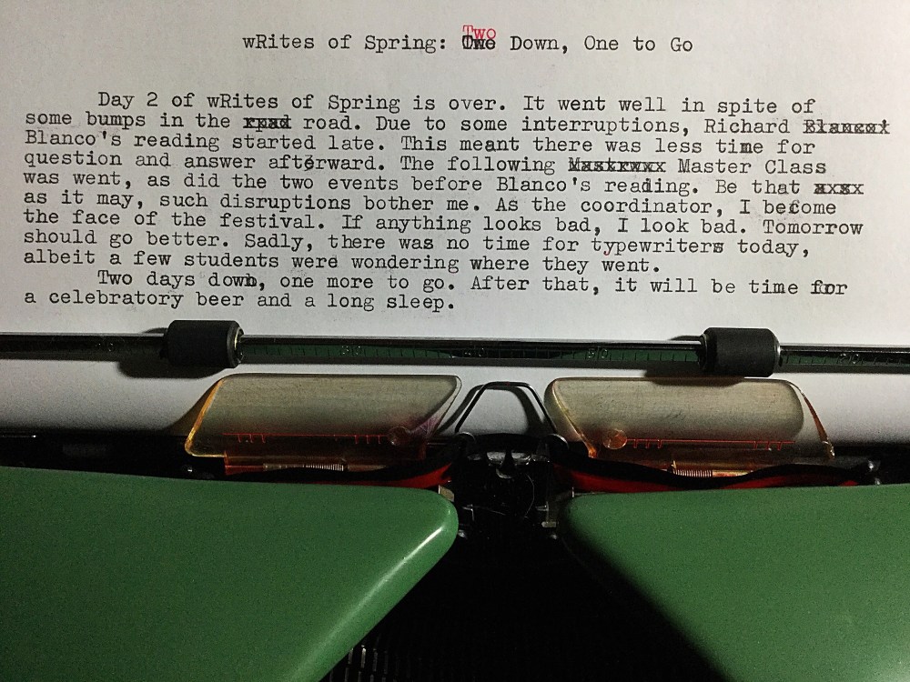 wRites of Spring: Two Down, One to Go Posted by McFeats on March 28, 2019 Share this: Share on X (Opens in new window) X Share on Facebook (Opens in new window) Facebook Like Loading...