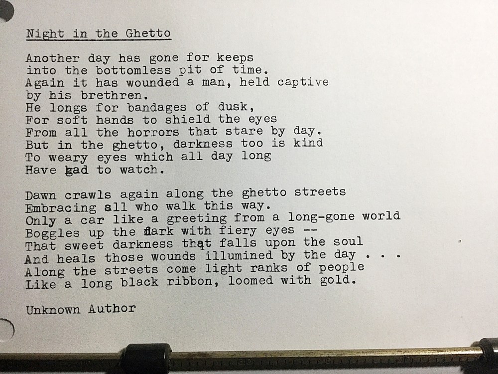 Terezin Poem#4: “Night in the Ghetto” (Unknown Author) Posted by McFeats on April 1, 2019 Share this: Share on X (Opens in new window) X Share on Facebook (Opens in new window) Facebook Like Loading...