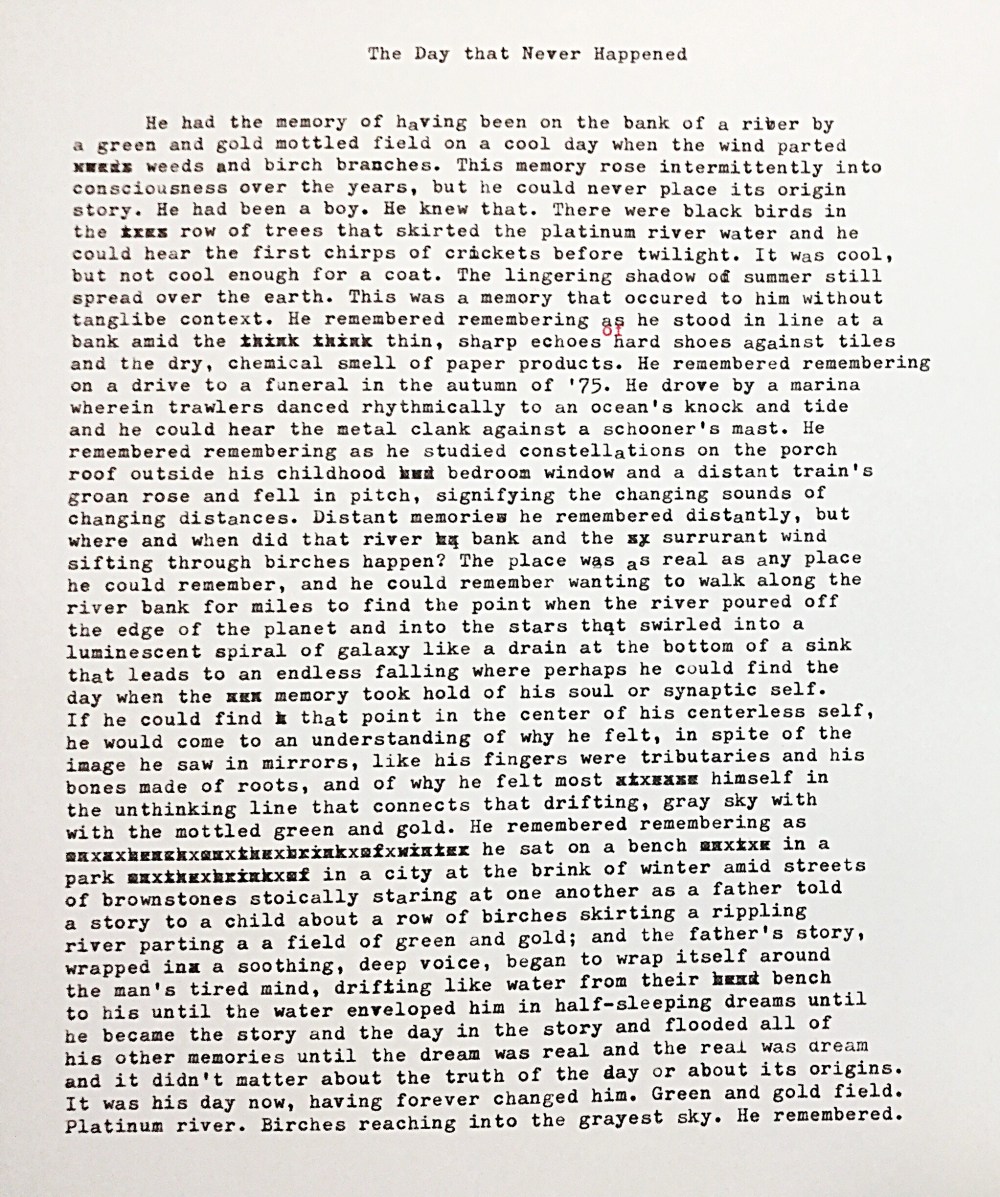 Thanks. This is modeled on a memory that might be true, but I’ve never been able to place it. I thought blurring the lines would be more interesting. A dream or story, after all, is just a different order of reality.