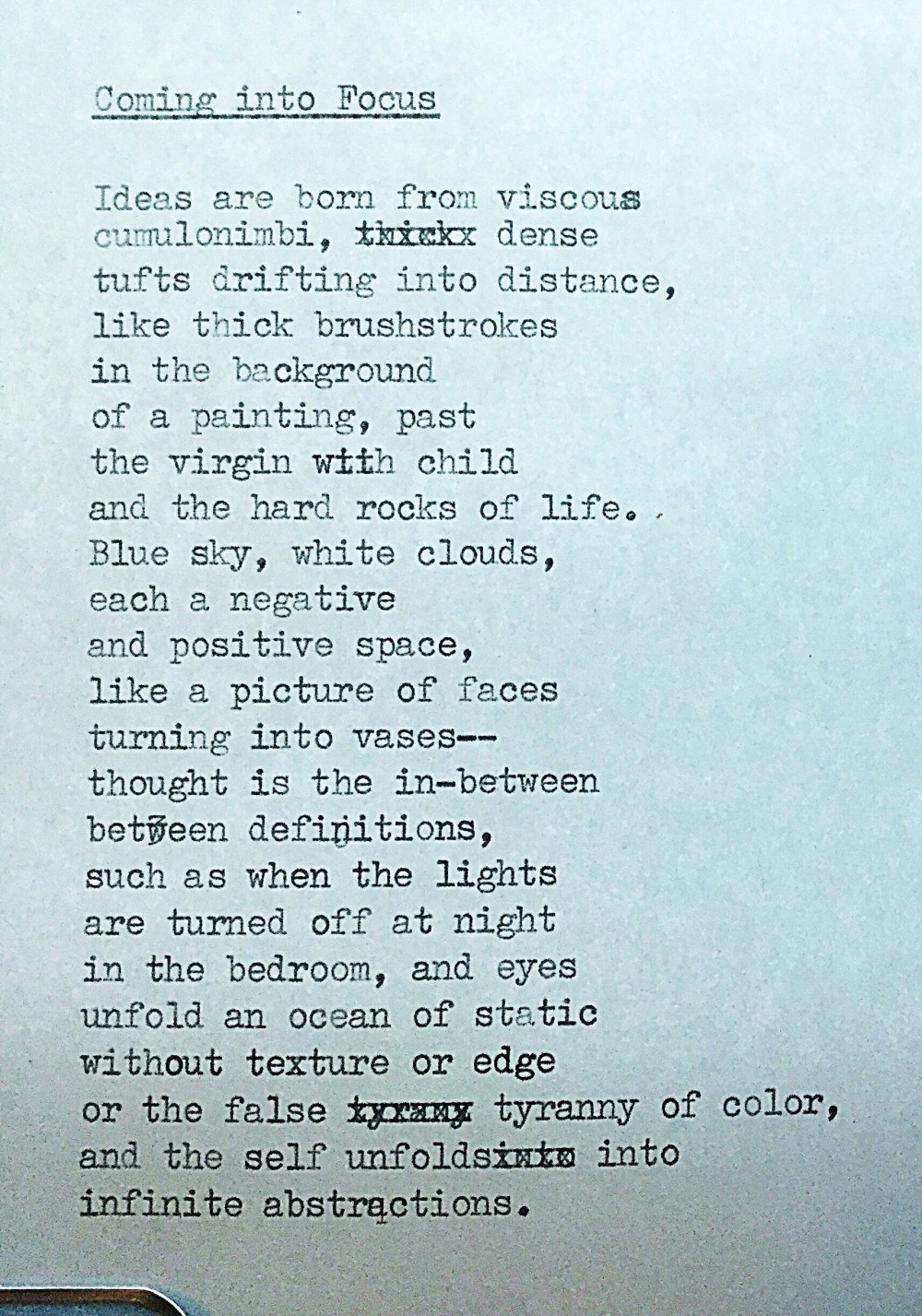 Coming into Focus – a poem Posted by McFeats on April 18, 2019 Share this: Share on X (Opens in new window) X Share on Facebook (Opens in new window) Facebook Like Loading...