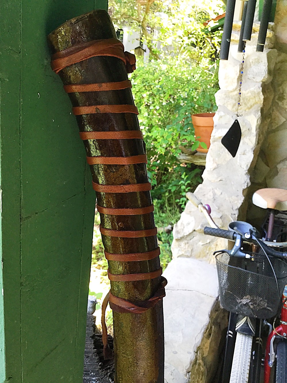 Then I added some leather strapping for aesthetic effect. I used the sealant spray on the leather, too. These are not handles.