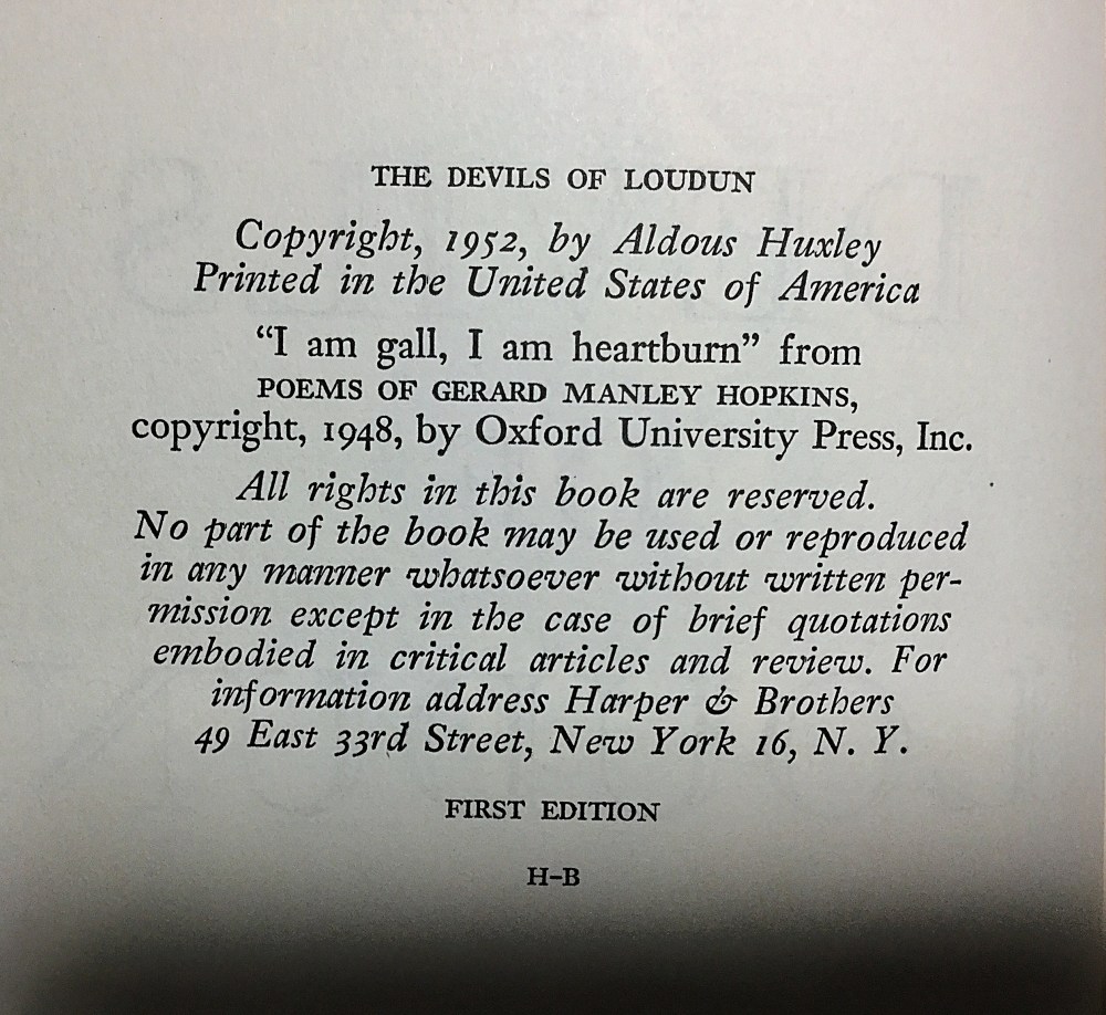 Although I’m something of an amateur expert on Huxley, I haven’t read that one. Ken Russell, that cinematic master of bad taste, made it into a movie with Oliver Reed in 1971. Someone on IMDB says of it that “evidently Ken Russell took many of the historical facts in Aldous Huxley’s ‘The Devils of Loudon’ and added large parts from ‘The Rocky Horror Picture Show’ and what looks to be a particularly over-the-top college production of ‘Marat/Sade.'” Ouch.