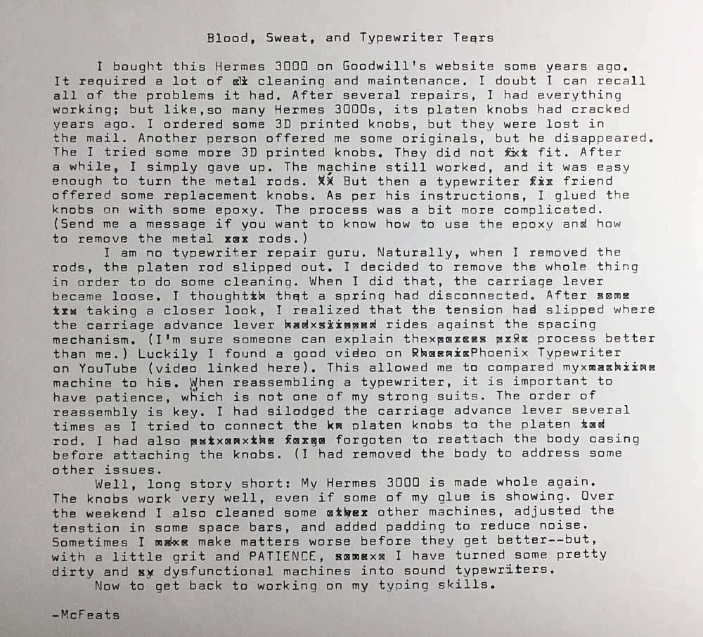 Blood, Sweat, and Typewriter Tears: A Hermes 3000