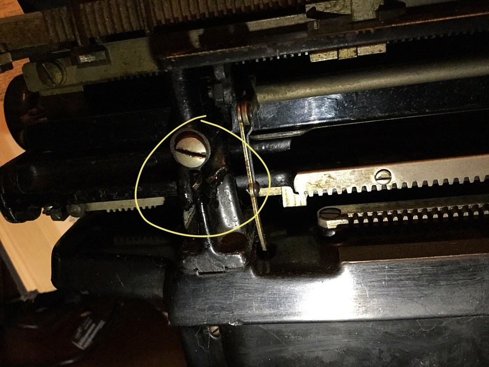 I don’t get it. I mean, I understand that the typewriter has had injuries, but while you mention that the machine types–and well–there’s nothing said about how the defects affect the functionality. It has a cracked frame and the right front foot isn’t what it once was. And it had a bad platen knob, which you saw before you bought it. What exactly is the problem? And what exactly is the deal with the tab keys? Why would someone “obstruct” them with a jerry-rigged solution like that?