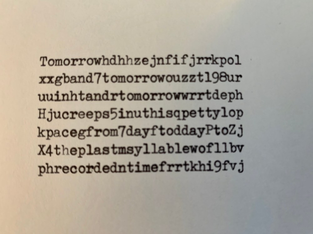 I’m working on a few puzzles for my time-travel story to illustrate what a character finds in some typescripts produced by chimpanzees, i.e. the infinite monkey theorem.