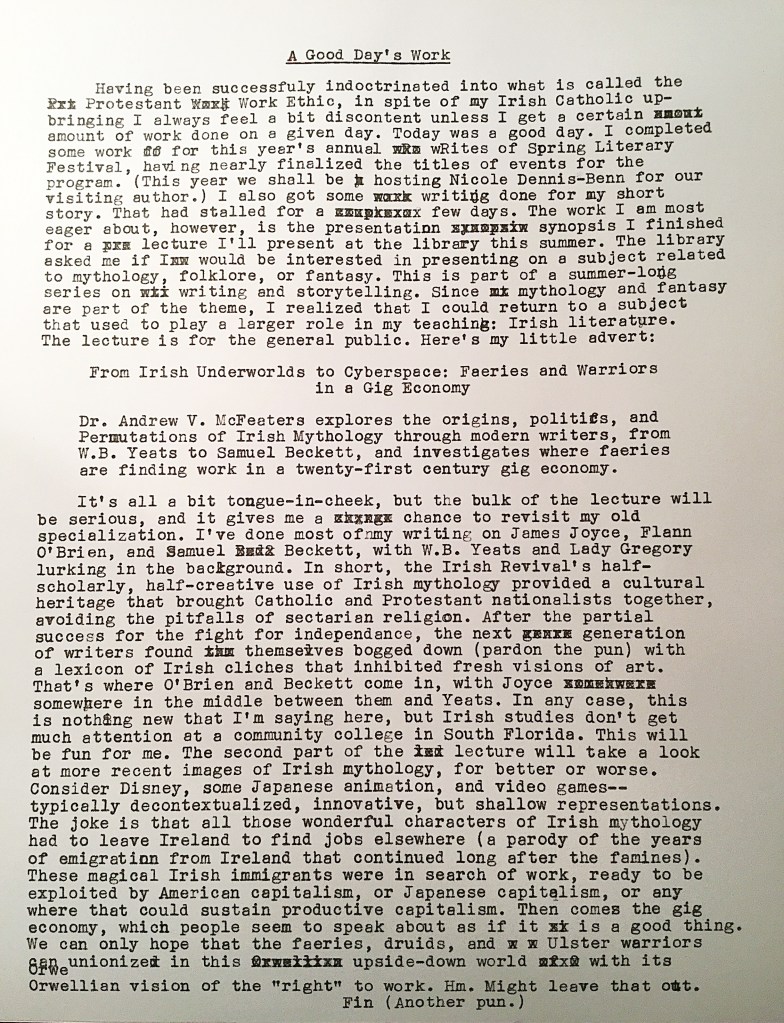Speaking of things Irish, yesterday I met a typewriter lover who is working on a book based on his Irish grandfather’s story of joining the Nazis during WWII just so he could kill Brits. Now that’s dedicated bloodthirstiness. The British responded by drafting Irishmen to fight on their side, and sending them into battles where they knew these “Wild Geese” would be present.