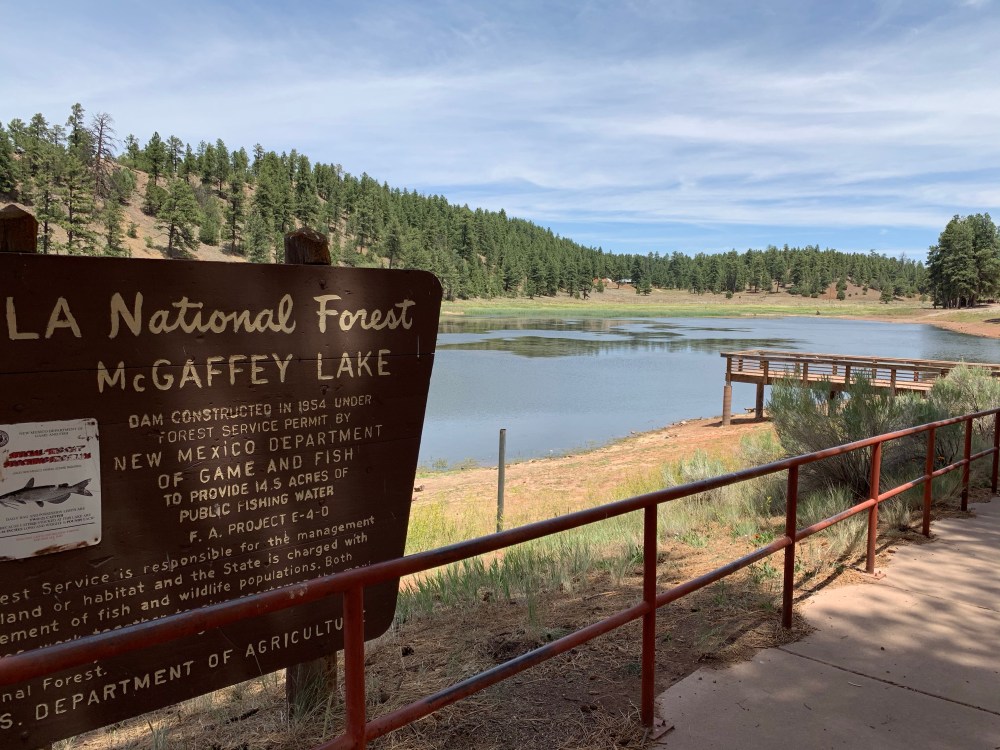 Route 66 is a straight shot from the RV park to the forest. Most of what surrounds me are red rock mesas–which are beautiful–but I’m a piny kind of guy, feeling most at home in the woods. I’ve seen magnificent photos of Cibola National Forest near Albuquerque, but I wasn’t so sure about the forest near Gallup.