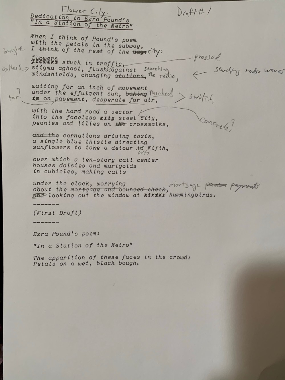 Flower City: Response to Ezra Pound’s “In a Station of the Metro” (Drafts of a poem) Posted by McFeats on January 10, 2021 Share this: Share on X (Opens in new window) X Share on Facebook (Opens in new window) Facebook Like Loading...