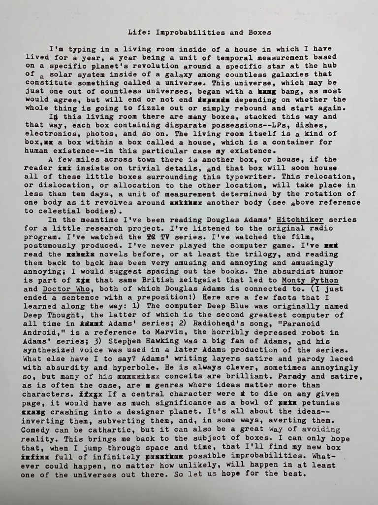 Life: Improbabilities and Boxes (and a little something on Douglas Adams) Posted by McFeats on June 10, 2022 Share this: Share on X (Opens in new window) X Share on Facebook (Opens in new window) Facebook Like Loading...