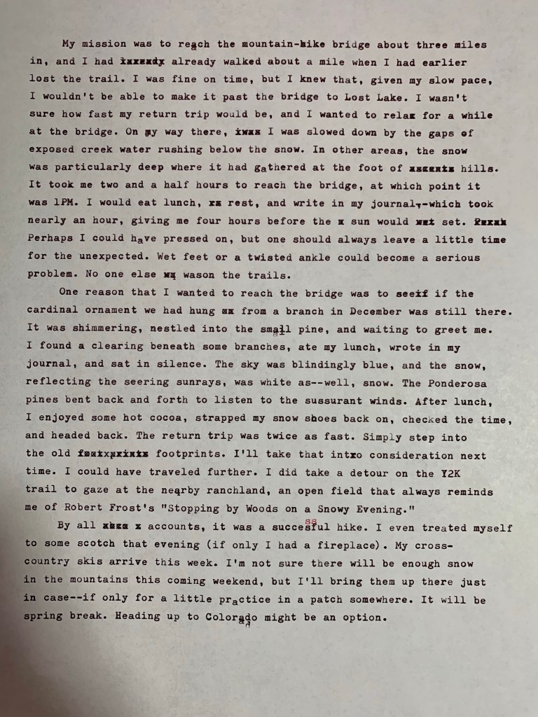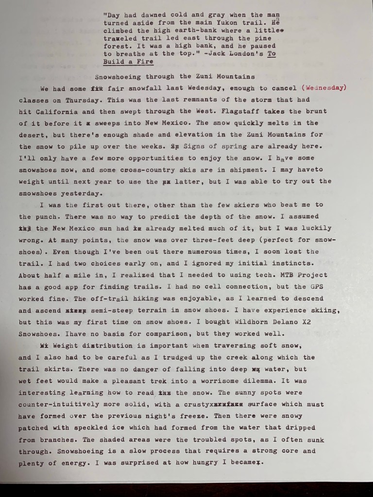 Nice snowshoes. I’ll need to upgrade if I get back out in deep snow. I agree with Richard; neat journal.