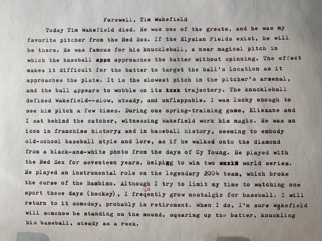 In some strange way the knuckleball captures the ethos of analog writing—the worth ethic and patience leading to an original event. No glam, no fluff.