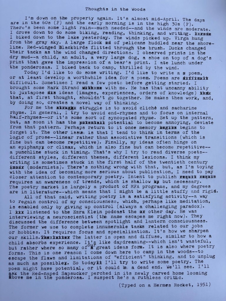 Thoughts about Writing in the Woods Posted by McFeats on April 11, 2026April 11, 2026 Share this: Share on X (Opens in new window) X Share on Facebook (Opens in new window) Facebook Like Loading...