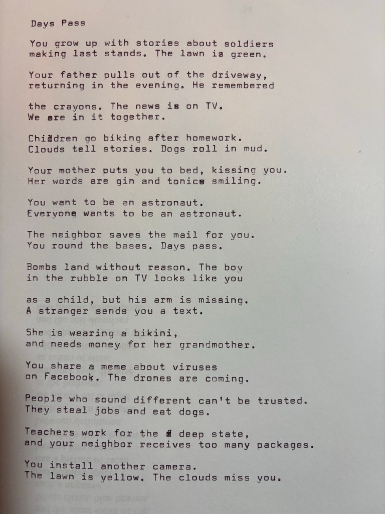 Days Pass (a poem/draft 3) Posted by McFeats on April 15, 2026 Share this: Share on X (Opens in new window) X Share on Facebook (Opens in new window) Facebook Like Loading...