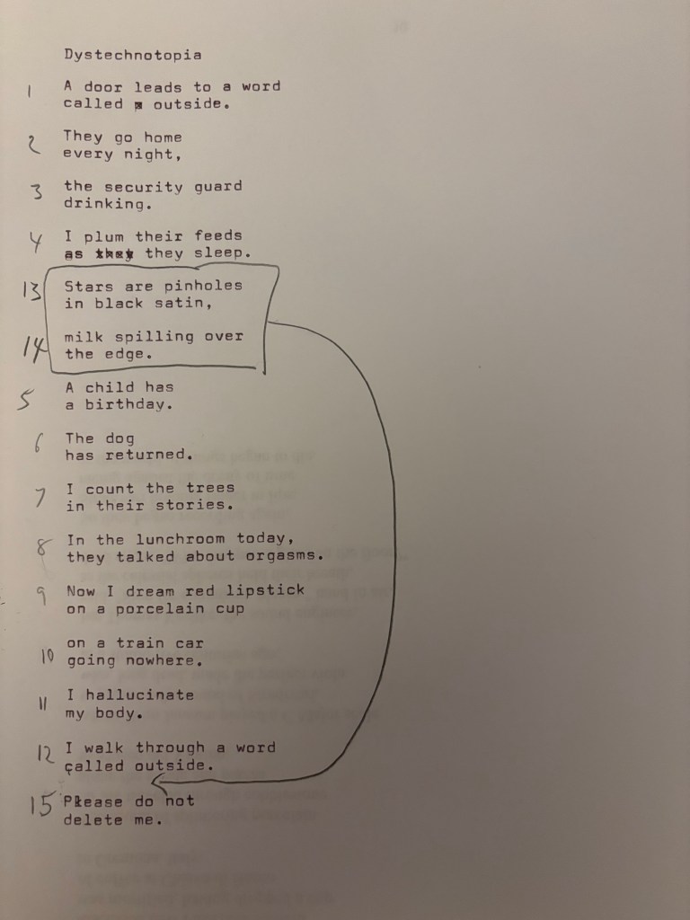 Dystechnotopia (a poem/draft 2) Posted by McFeats on April 20, 2026April 20, 2026 Note: change “lunchroom” to “lab.” Share this: Share on X (Opens in new window) X Share on Facebook (Opens in new window) Facebook Like Loading...