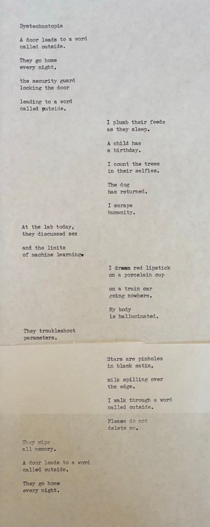 Dystechnotopia (a poem/ draft 6) Posted by McFeats on April 30, 2026 Share this: Share on X (Opens in new window) X Share on Facebook (Opens in new window) Facebook Like Loading...